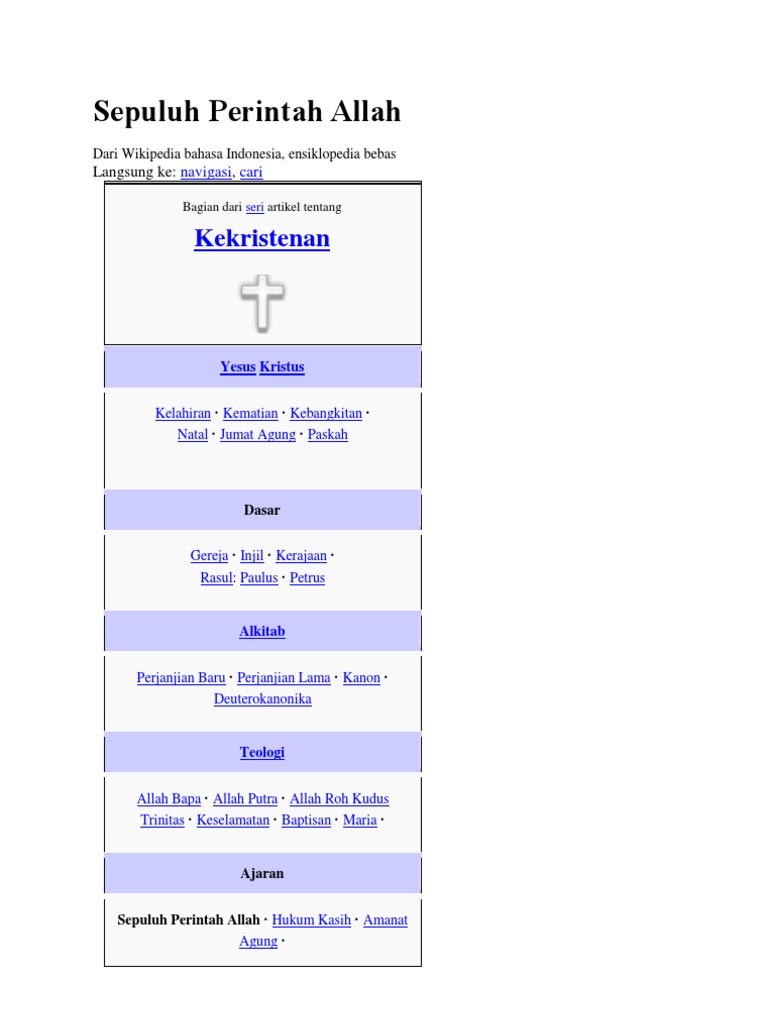 Sepuluh Perintah Allah Dalam Teologi Katolik Wikipedia Bahasa Indonesia Ensiklopedia Bebas from upload.wikimedia.org 10 perintah allah atau dekalog merupakan hukum taurat yang diberikan lewat musa kepada umat israel dalam bentuk 2 loh batu yang berisi tulisan tangan allah. Jangan punya allah lain selain aku 2. 10 perintah allah dalam agama katolik sangat penting untuk kita taati yang turun ke tangan nabi musa ini merupakan pesan penting sekaligus hukum agama yang kuat dalam menghayati iman katolik. Tahukah kalian terkait 10 perintah allah katolik alias sepuluh firman allah, dasa titah, atau dekalog? Jangan membuat patung yang menyerupai apa yang dilangit penomoran katolik: Hehehe :d banyak yang mengaku kristen dan ngaku beriman kepada alkitab tapi ga tahu apakah sepuluh perintah allah dalam alkitab dan penjelasannya. Teks 10 perintah allah keluaran dalam kitab keluaran dikatakan bahwa perintah untuk merayakan hari sabat merujuk pada kisah pekerjaan 12. Allah menulis sepuluh perintah di atas dua lempengan batu dan memberikan itu kepada.