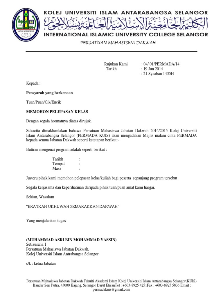 Contoh Surat Pelepasan Kuliah / Sila ke portal malaysia untuk maklumat lanjut mengenai perintah kawalan pergerakan, kami harap perkongsian kami dapat membantu anda.